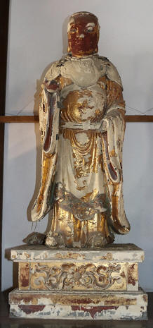 宝林寺は、江戸幕府旗本であった近藤登之助貞用(こんどうのぼりのすけさだもち1606~1696)に招聘された明からの渡来僧の独湛性瑩(どくたんしょうえい1628~1706)により寛文4年(1664)に開創された黄檗宗の寺院である。 本尊の釈迦如来坐像の背面には、寛文7年(1667)に大仏師法橋康祐(こうゆう)が造像した旨の陰刻銘があり、その両脇壇に安置されている今回の修復対象である二十四善神像についても、造形や造像技法から、同じ康祐(または康祐工房)による同時期の作とみられている。同寺の仏殿は寛文7年(1667)に建立されており、これらの仏像が完成して直ちに安置されたと考えられる。 二十四善神は、「金光明経(こんこうみょうきょう)」などにみられる二十天に、明代に道教の四善神を加えたものと考えられ、日本では宝林寺像以外には知られておらず、日本における初期黄檗宗の安置尊像を知る上で貴重な作例である。 全像ともに経年による劣化・損傷が激しく、2017年度から修復を開始し、10躯を終えた後2021年度から7ヵ年計画で修復を行っており、本年度はその3年目となる(住友財団の助成としては2021年度に続いて2年目)。 |
